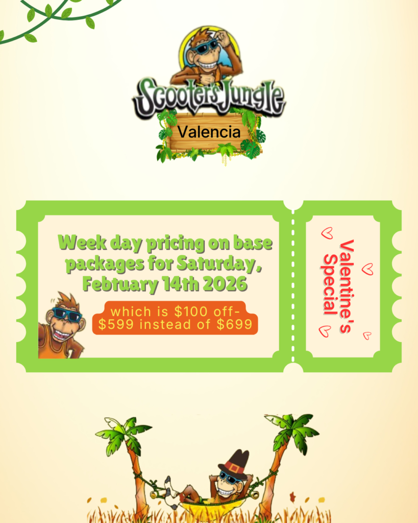 Note: Please call (661) 877-4400 or Email @ SJValencia@ScootersJungle.com for Booking Questions and extra availability or for events less than 14 days away.